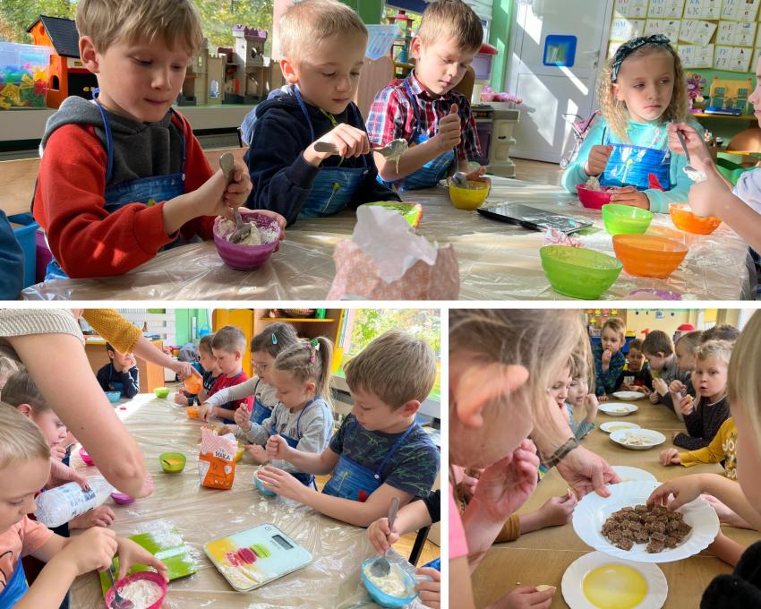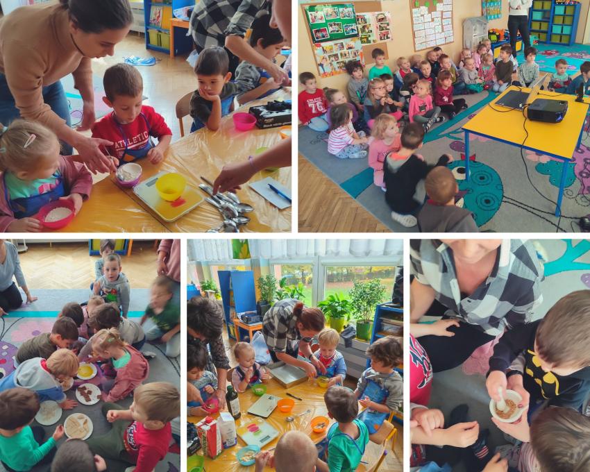 14, 17 i 18 października Mamy naszych przedszkolaków przeprowadziły dla dzieci niesamowite warsztaty kulinarne! Na początku była teoria - pokaz prezentacji multimedialnej OD ZIARENKA DO BOCHENKA. Następnie praktyka - samodzielne ważenie i dodawanie składników oraz zagniatanie ciasta. Kolejnym etapem było formowanie bułeczek i dekorowanie ich sezamem lub makiem. Kiedy wypieki rumieniły się w piekarniku, dzieci uczestniczyły w degustacji różnych rodzajów pieczywa. Na końcu dumne przedszkolaki zabrały swoje pachnące bułeczki do domów, by pochwalić się rodzicom nowymi umiejętnościami i wiedzą.