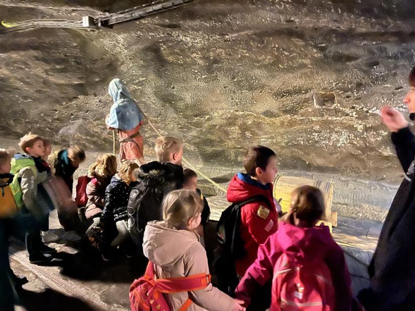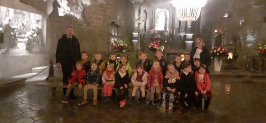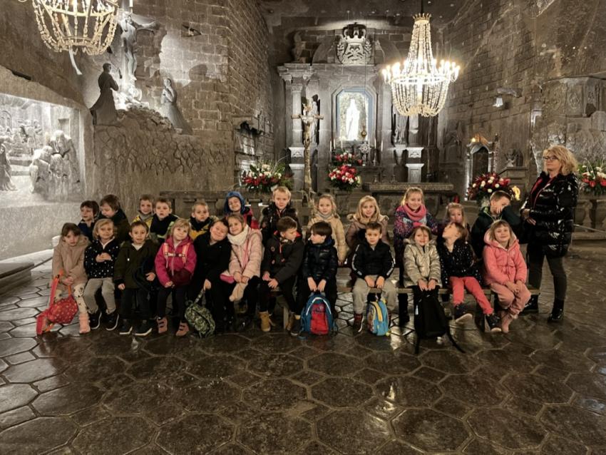 6 grudnia nasze starszaki wyruszyły na wycieczkę do Kopalni Soli w Wieliczce. Podczas spaceru z przewodnikiem podziemnymi tunelami, dzieci poznały legendę o św. Kindze oraz historię i ciekawostki na temat kopalni. Przedszkolaki odwiedziły 20 komór wykutych w skałach, podziwiały solne rzeźby oraz solne jeziorko, przy którym słuchały muzyki Chopina. W czasie tej pasjonującej i pełnej odkryć wyprawy dzieci dowiedziały się, że sól jest nie tylko słona, ale tworzy wielobarwne kryształy o różnych formach. Było Wspaniale!