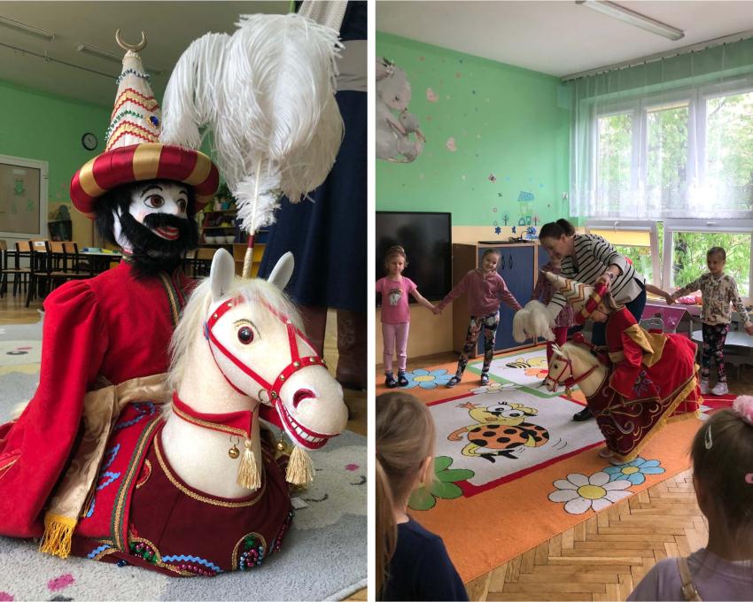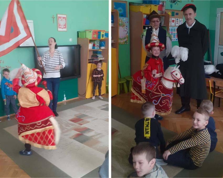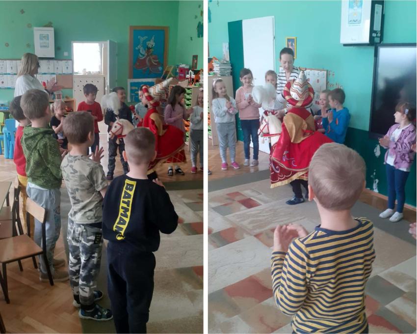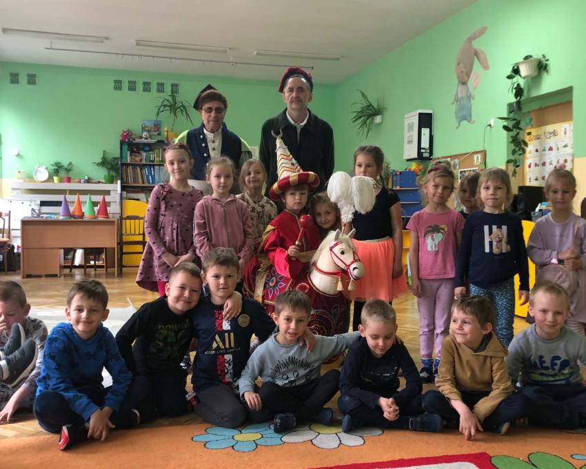 Nasze najstarsze przedszkolaki odwiedził niezwykły gość - Lajkonik oraz jego orszak. W trakcie zajęć dzieci wysłuchały legendę o Lajkoniku, zobaczyły stroje orszaku i dowiedziały się czym jest pochód Lajkonika. Wspólnie zaśpiewały piosenkę i odegrały taniec Lajkonika. Na koniec przygotowały piękne czapki tatarskie.
