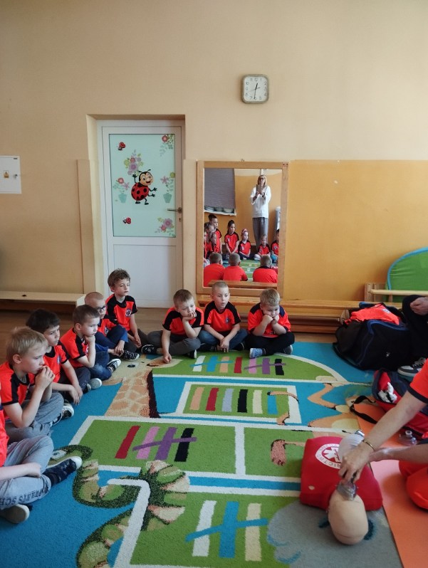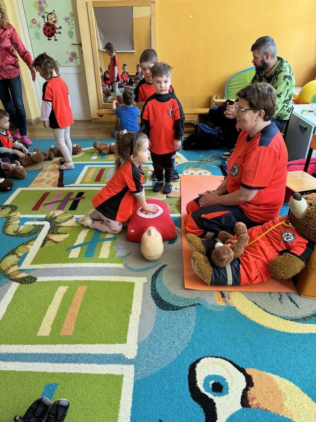 Przedszkolaki ze wszystkich grup poznały zasady udzielania pierwszej pomocy! Podczas warsztatów pt. Mały ratownik miały okazję opatrywać rany, używać koca termicznego, a nawet przeprowadzać resuscytację. Dzieci nauczyły się również wzywania pomocy dzwoniąc na numery alarmowe 112 oraz 999.