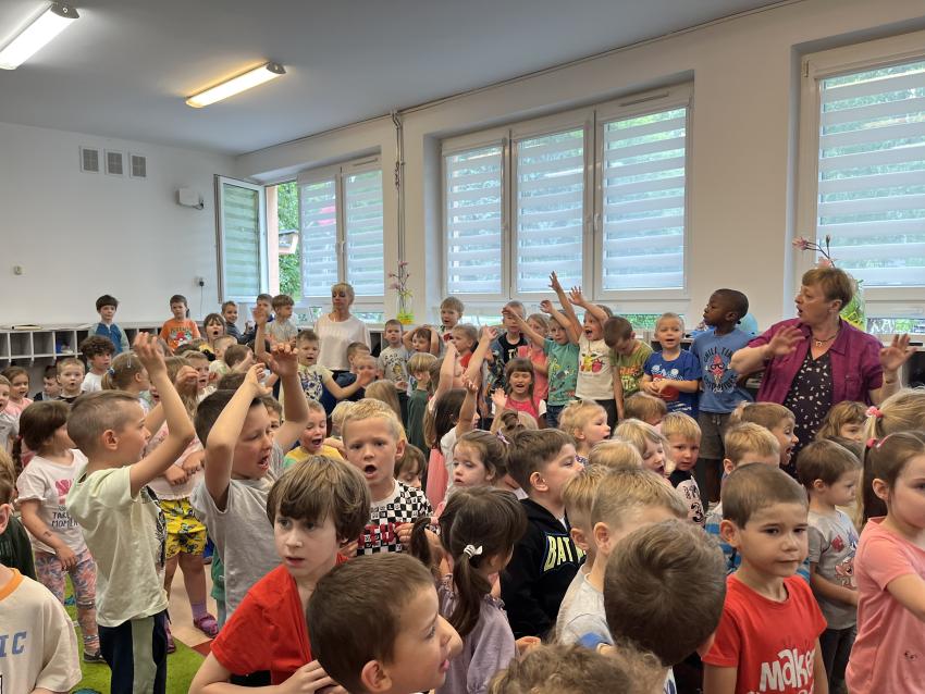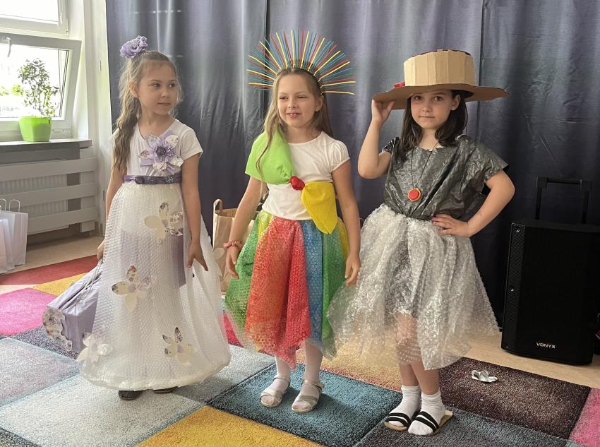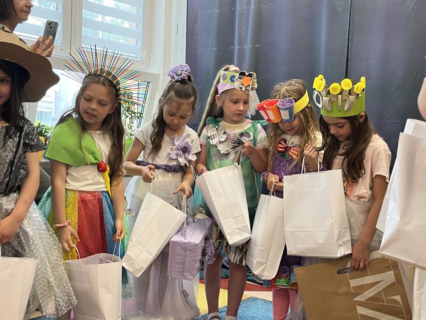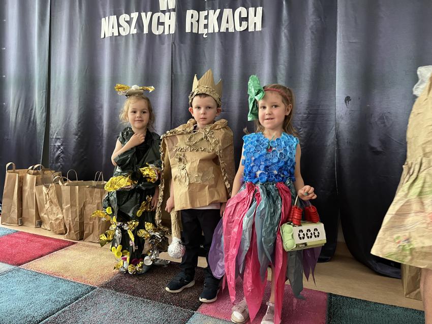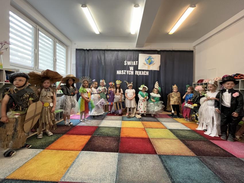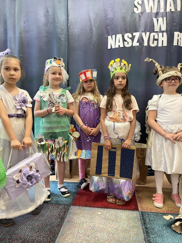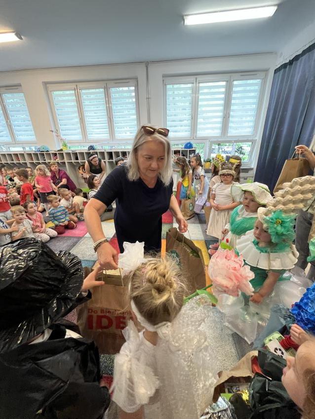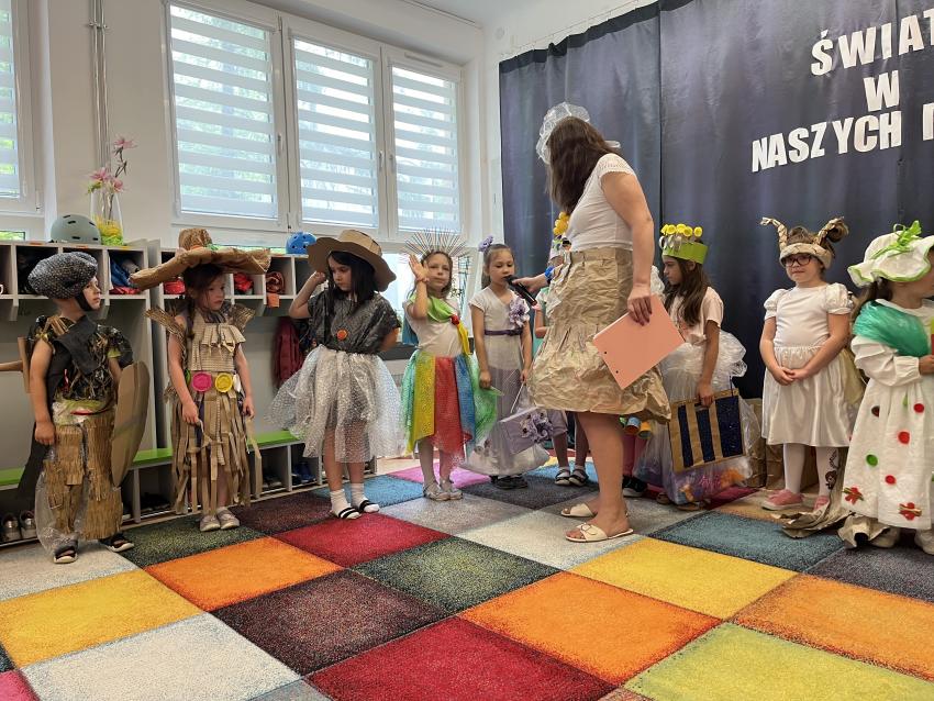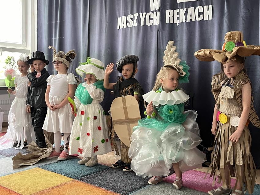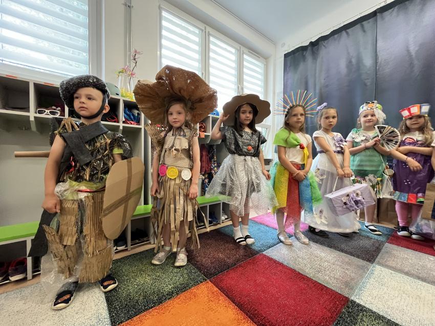 Dnia 22 maja w naszym przedszkolu odbył się ekologiczny pokaz mody na którym powiły się najnowsze projekty eko wizjonerów ze Stokrotki, a także wspaniałe kreacje zaprzyjaźnionych artystów z trzech krakowskich przedszkoli: nr 187, nr 64 oraz nr 177. Po prezentacji wspaniałych, pomysłowych strojów wykonanych z surowców wtórnych, dzieci popisały się swoją wiedzą na temat ekologii. Następnie wszystkie przedszkolaki odśpiewały z zaangażowaniem eko piosenkę pt. Świat w naszych rękach. Na końcu pani Dyrektor wręczyła upominki uczestnikom pokazu oraz ich grupom, które miały nie mały udział w przygotowaniu niezwykłych kreacji.