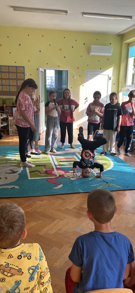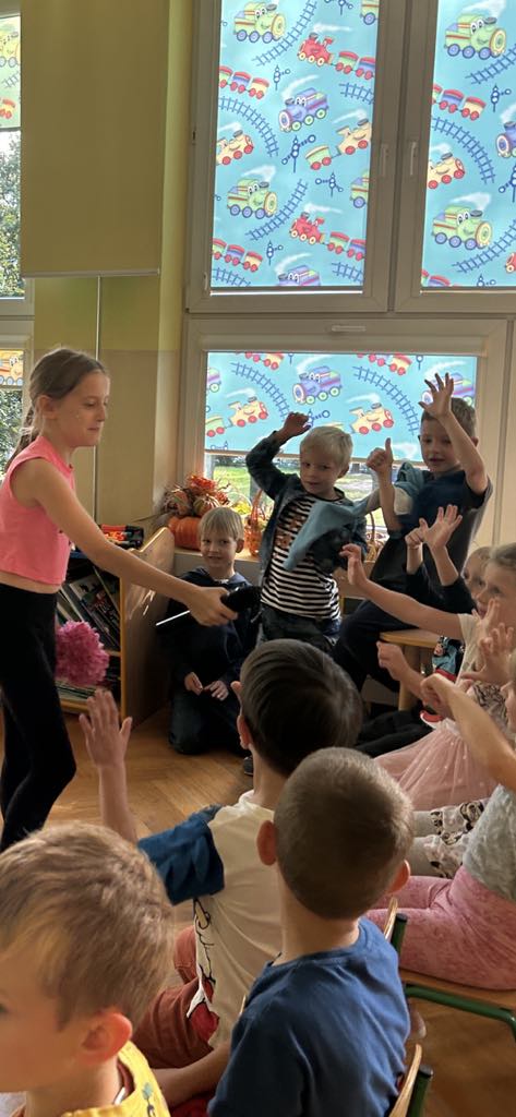 Wisienką na torcie była wizyta naszych starszych kolegów z podstawówki - absolwentów Stokrotki. Przygotowali dla nas niesamowite show: tańce, piosenki, recytacje i wiele innych atrakcji. Wspólne zabawy, quizy i ćwiczenia sprawiły, że ten dzień był jeszcze bardziej wyjątkowy.
