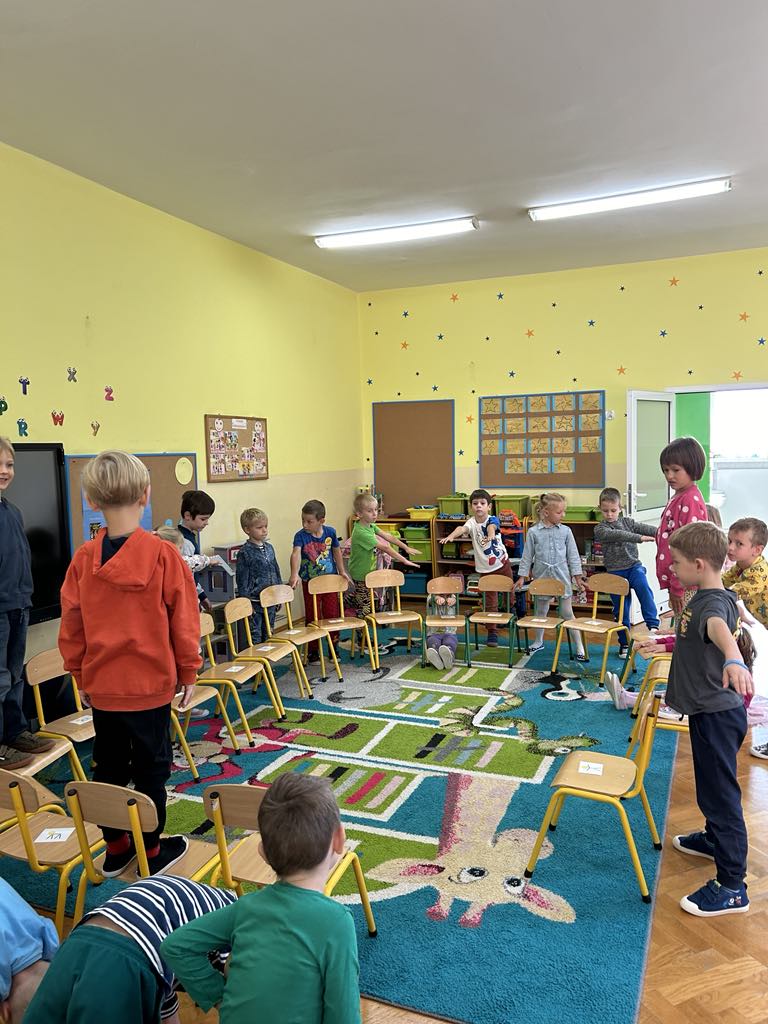 Dzień rozpoczęliśmy od porcji ruchu. Przeprowadziliśmy zabawy ruchowe, zręcznościowe i orientacyjne, podczas których Gwiazdeczki zwinnie pokonywały przeszkody i wykazały się niezwykłym sprytem. Każdy uczestnik otrzymał pamiątkowy medal przedszkolaka.