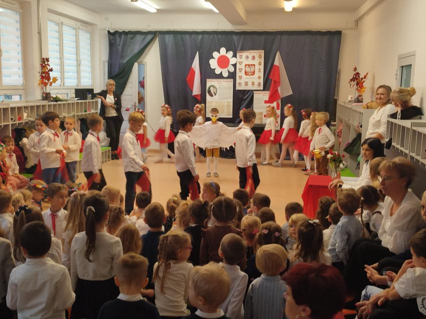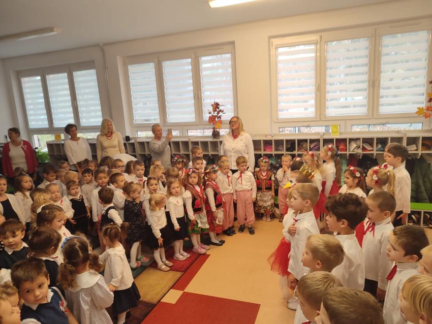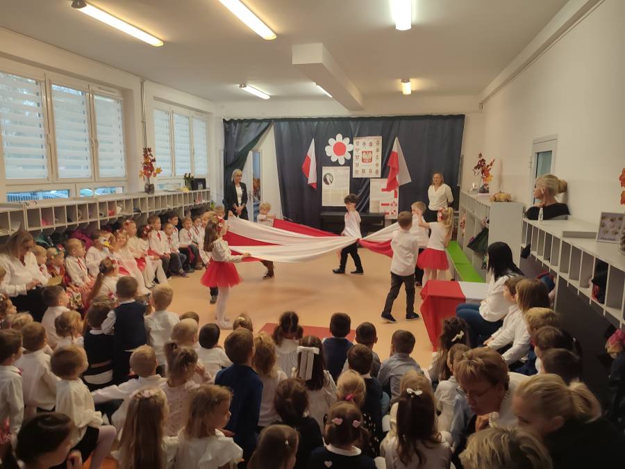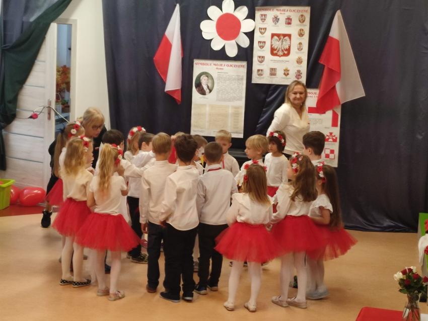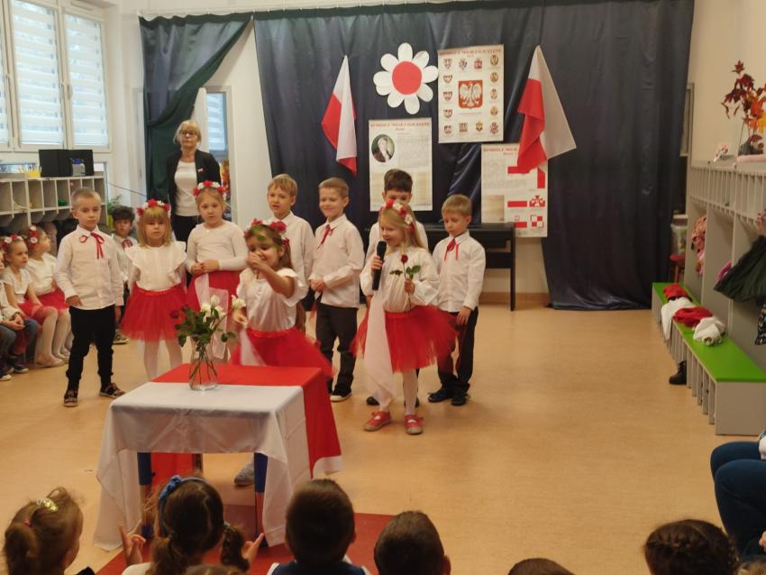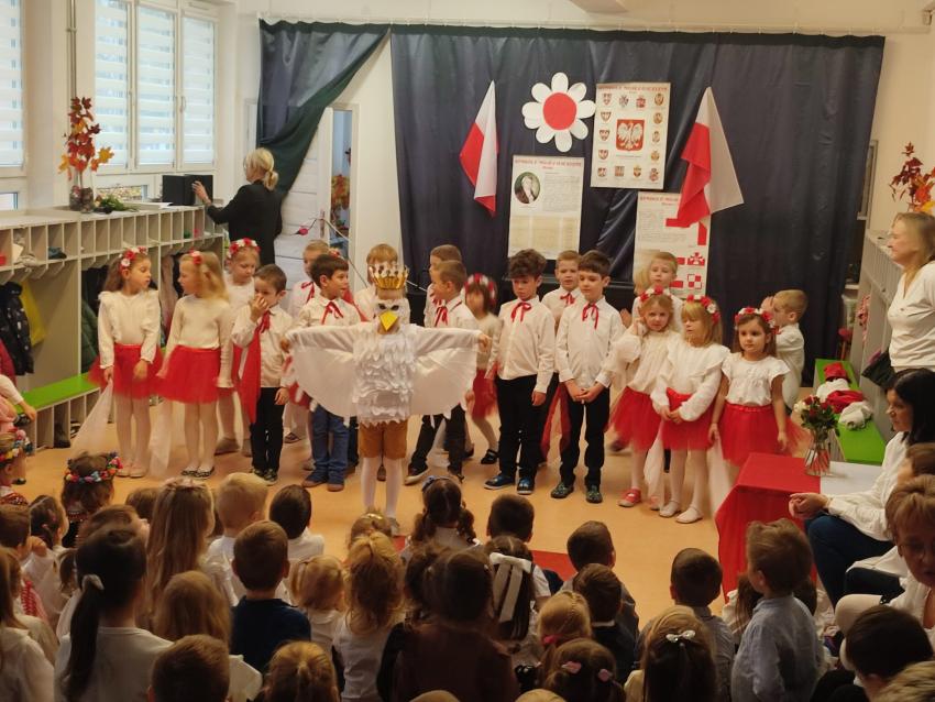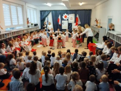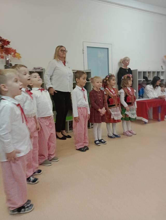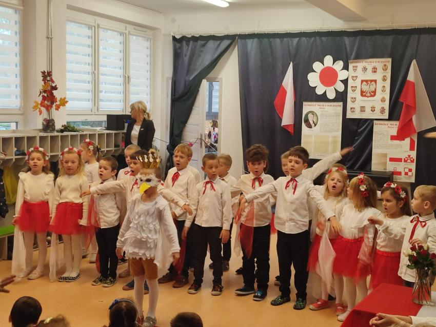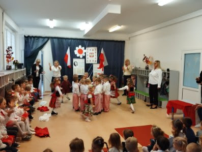 W piątek, 8 listopada, w naszym przedszkolu odbył się Apel z okazji Dnia Niepodległości. Dzieci  uczciły pamięć o polskiej historii. Dlatego też w tym roku po raz kolejny nasze przedszkole włączyło się w ogólnopolską akcję "Szkoła Do Hymnu". Wspólnie odśpiewaliśmy Hymn Narodowy, a   przedszkolaki z grupy PSZCZÓŁKI i GWIAZDWCZKI  przygotowywały z tej okazji część artystyczną.