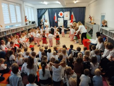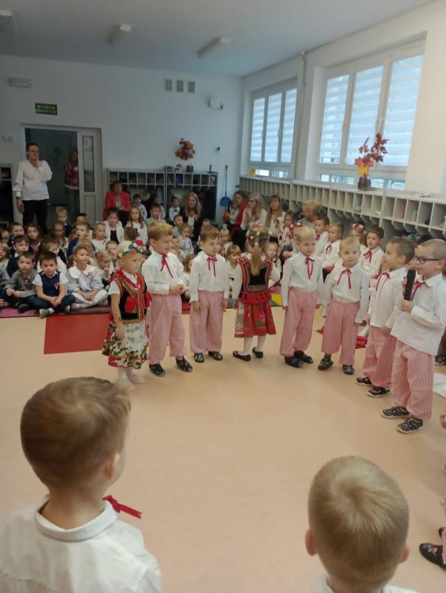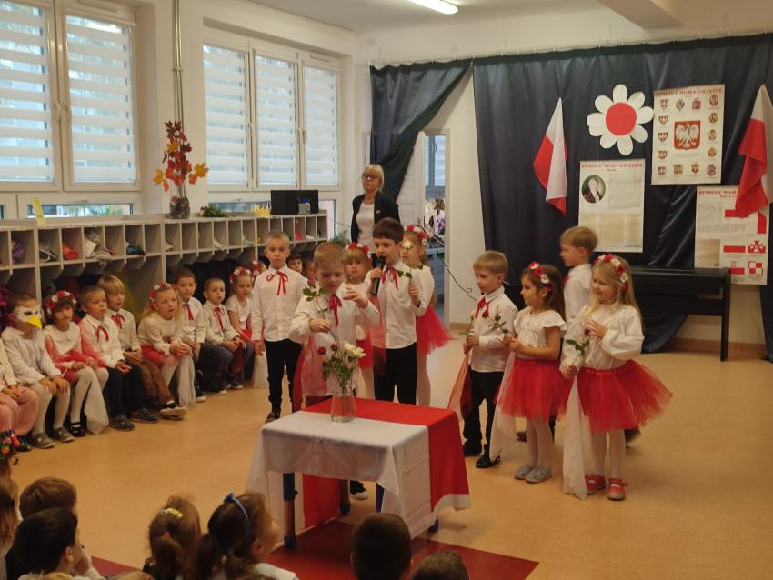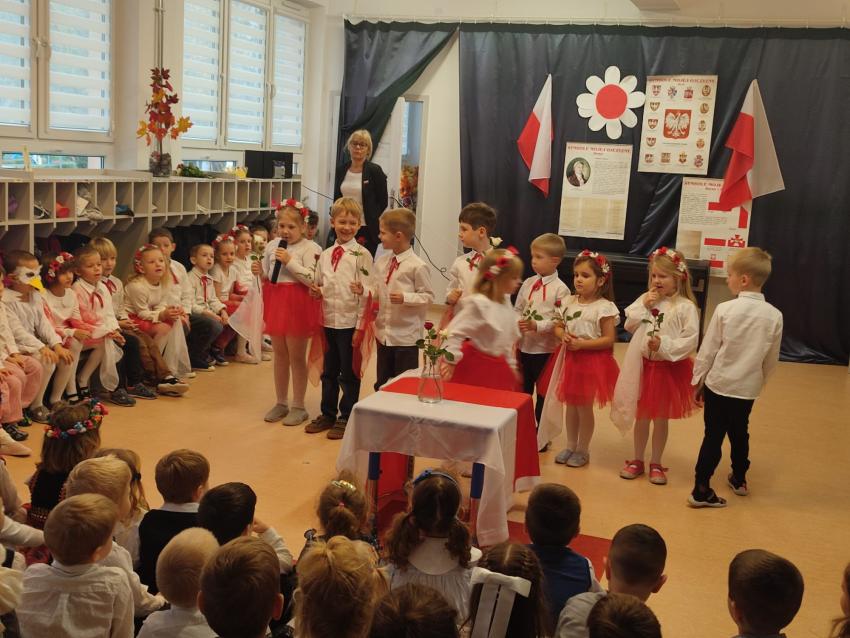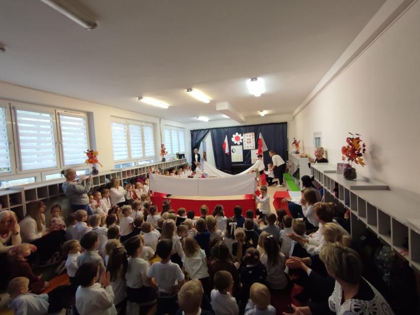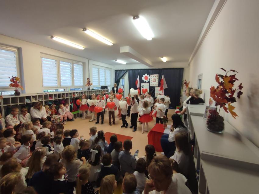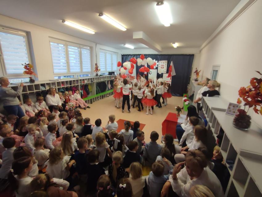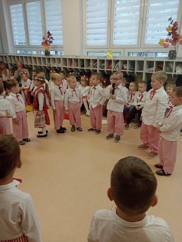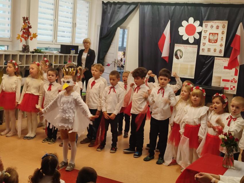 W piątek, 8 listopada, w naszym przedszkolu odbył się Apel z okazji Dnia Niepodległości. Dzieci  uczciły pamięć o polskiej historii. Dlatego też w tym roku po raz kolejny nasze przedszkole włączyło się w ogólnopolską akcję "Szkoła Do Hymnu". Wspólnie odśpiewaliśmy Hymn Narodowy, a   przedszkolaki z grupy PSZCZÓŁKI i GWIAZDWCZKI  przygotowywały z tej okazji część artystyczną.