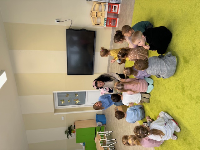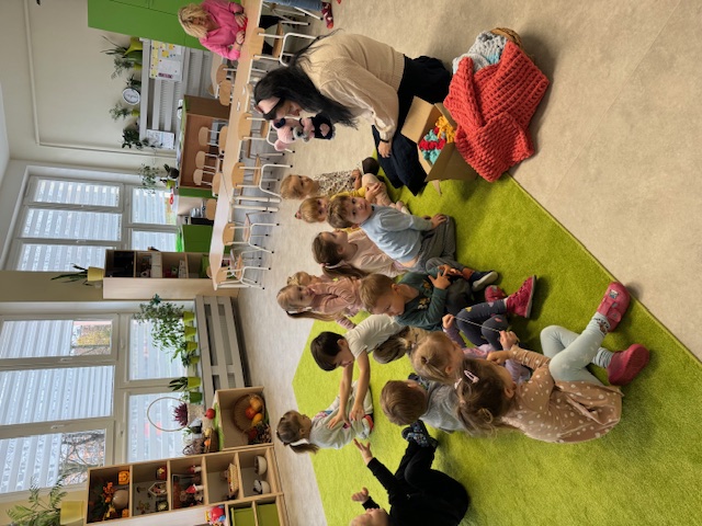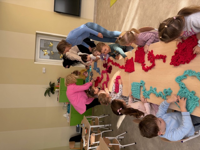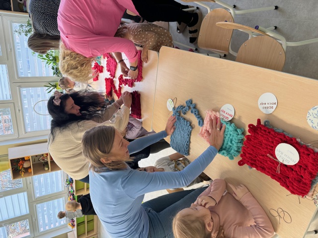 Po raz drugi grupa MOTYLKI uczestniczyła w warsztatach z szydełkowania. Dzieci robą cieplutki kocyk.
