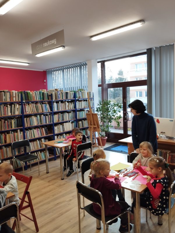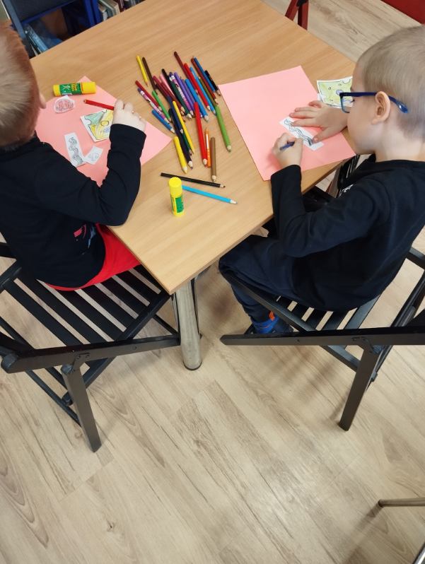 Pszczółki i Biedronki odwiedziły Ośrodek Kultury Norwida - Kuźnia , gdzie odbyły się warsztaty "Skrzydlata biblioteka|" Przedszkolaki przeniosły się do Włoch , gdzie przygotowywały pizze , kolorując , wycinając i przyklejając poszczególne jej składniki. Było również budowanie krzywych wież.