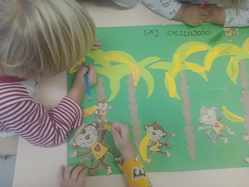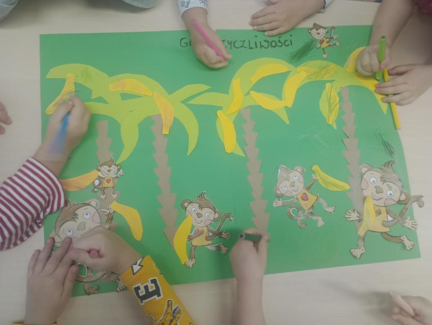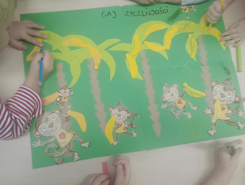 Kolejnym etapem zajęć było wspólne stworzenie wyjątkowego miejsca Gaj życzliwości . W ten sposób przedszkolaki nie tylko poznały znaczenie słowa - życzliwość, ale również zrozumiały, jak ważne jest okazywanie jej każdego dnia -  w przedszkolu, w domu i wśród przyjaciół.