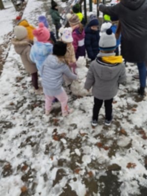 Pierwszy śnieg w tym roku przyniósł dzieciom z grupy Pszczółki mnóstwo radości. Dzieci z ogromnym entuzjazmem wybiegły na przedszkolny ogród, aby wspólnie odkrywać zimowe zabawy.