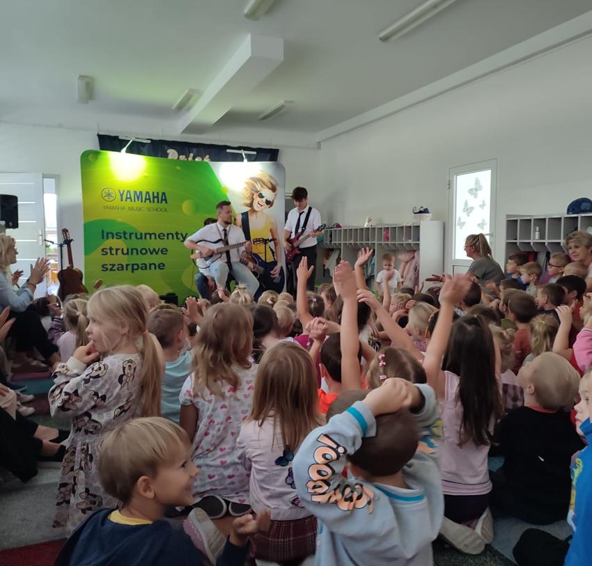 26 listopada w naszym przedszkolu odbył się kolejny niezwykły występ. Muzycy ze Szkoły Yamaha zaprezentowali dzieciom instrumenty muzyczne perkusyjne z całego świata. Dzieci mogły odkrywać różnorodność dźwięków wydobywanych przez te instrumenty. Chętne przedszkolaki mogły samodzielnie zagrać na djembe, perkusji, bębnie, ksylofonie, dzwonkach chromatycznych. To interaktywne i edukacyjne wydarzenie inspiruje do fascynacji muzyką  od najmłodszych lat. Przyczynia się do kształtowania odpowiedniej postawy w odniesieniu do sztuki, uczy szacunku do wysiłku artystycznego oraz rozwija kreatywność, a także pomaga odkrywać potencjał intelektualny.. Dzieci bawiły się wspaniale i nie mogą się doczekać kolejnego spotkania.