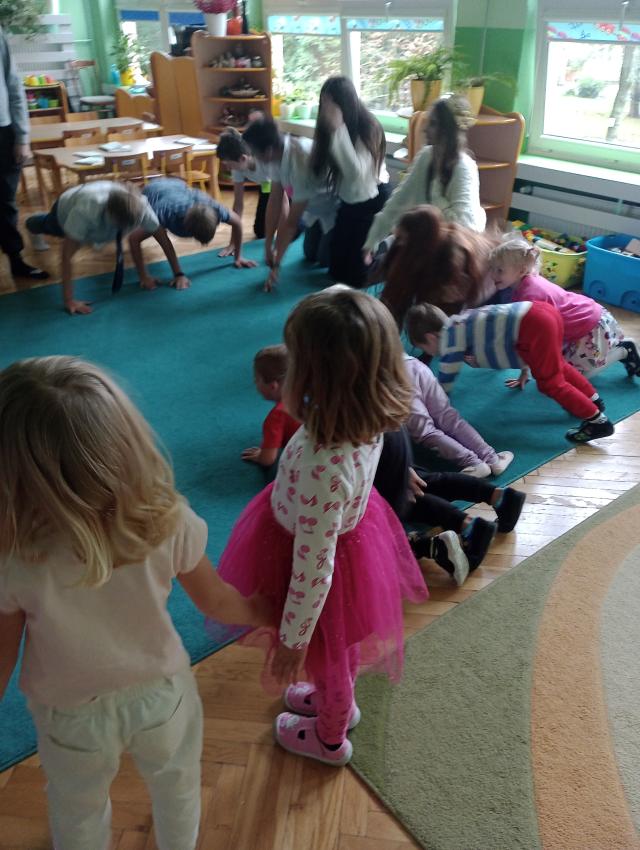 Wisienką na torcie była wizyta naszych starszych kolegów z podstawówki - absolwentów Stokrotki. Przygotowali dla nas niesamowite show: tańce, piosenki, recytacje i wiele innych atrakcji. Wspólne zabawy, quizy i ćwiczenia sprawiły, że ten dzień był jeszcze bardziej wyjątkowy.