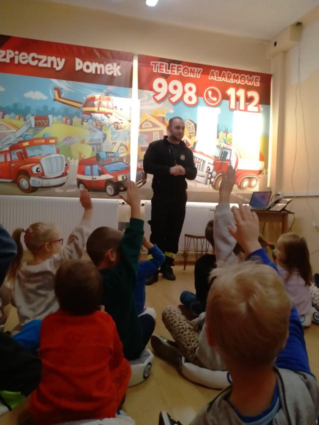 Przedszkolaki uczestniczyły w prelekcji z udziałem Straży Pożarnej, której przedstawiciel zdradził jak należy zachować się w przypadku niebezpieczeństwa i co należy zrobić by uniknąć pożaru. Kolejną atrakcją było oglądanie filmu " Bamse - malutka przygoda wielkiego misia."