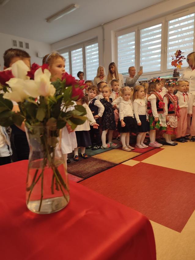 W piątek, 8 listopada, w naszym przedszkolu odbył się Apel z okazji Dnia Niepodległości. Dzieci  uczciły pamięć o polskiej historii. Dlatego też w tym roku po raz kolejny nasze przedszkole włączyło się w ogólnopolską akcję "Szkoła Do Hymnu". Wspólnie odśpiewaliśmy Hymn Narodowy, a   przedszkolaki z grupy PSZCZÓŁKI i GWIAZDWCZKI  przygotowywały z tej okazji część artystyczną.