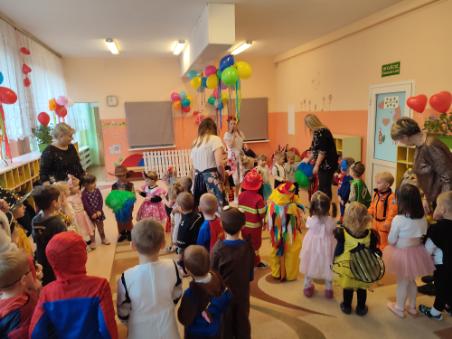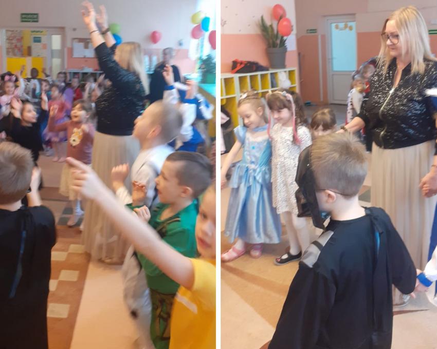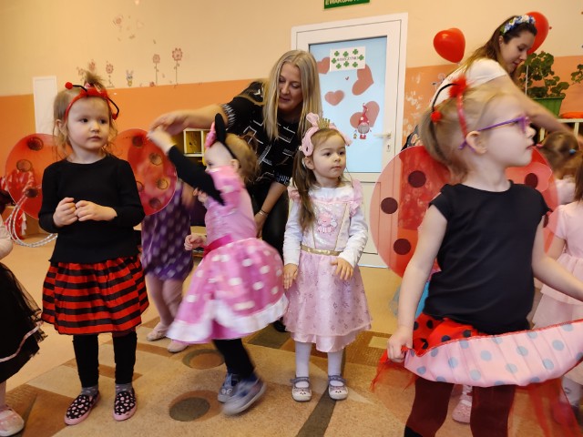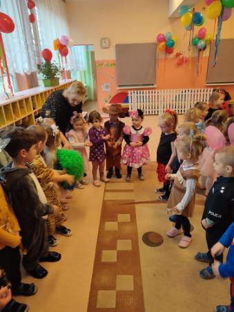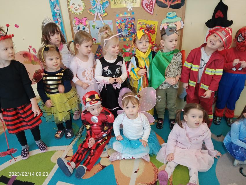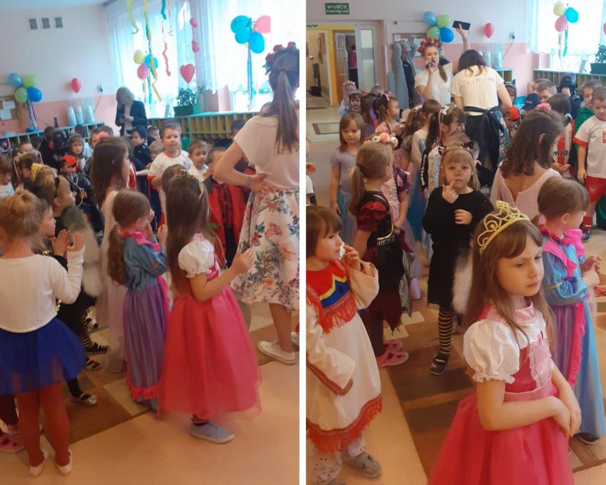 14 lutego nasze przedszkolaki zamieniły się w bajkowe postaci. Księżniczki, wróżki, rycerze, policjanci, a także Batman i Kubuś Puchatek tańczyli w rytm wesołej muzyki. Konkursy i zabawy dostarczyły dzieciom wielu wspaniałych wrażeń. Było super!