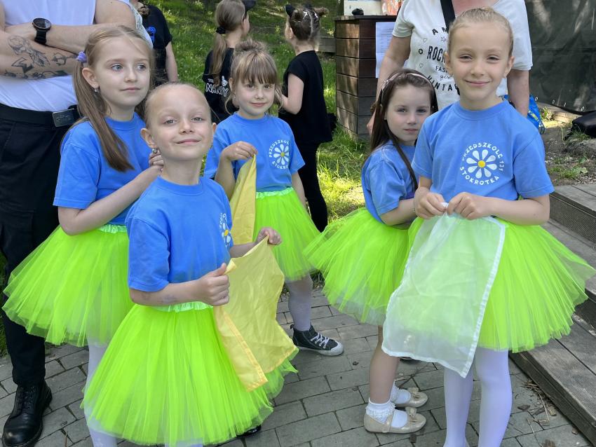 Podczas Mistrzejowickiej Majówki nie mogło zabraknąć reprezentacji Stokrotki. Na scenie wystąpił pięcioosobowy zespół: Łucja, Kaja, Maja, Zuzia i Lila. Dziewczynki zaprezentowały taniec z chusteczkami do muzyki Brahmsa, a następnie dwie piosenki autorstwa Pani Ewy Stefańczyk Pies na łańcuchu oraz Co mówi pies. Gratulujemy naszym młodym i odważnym artystkom!