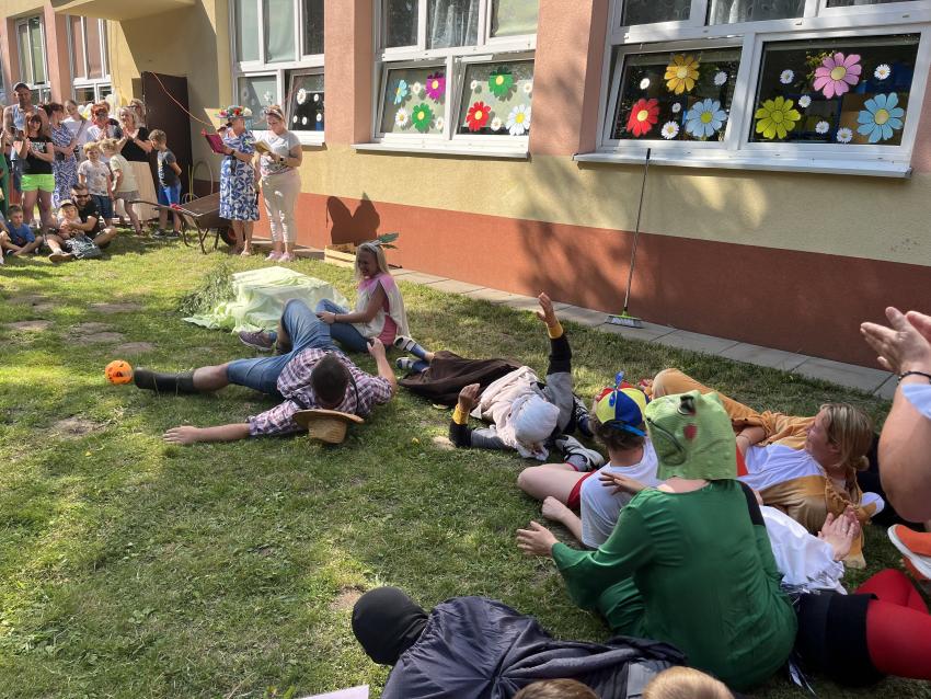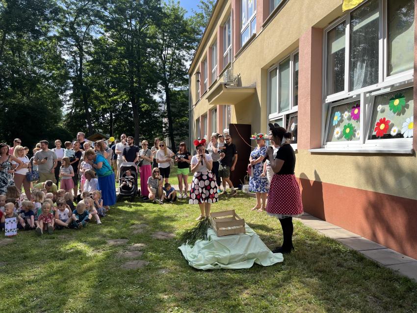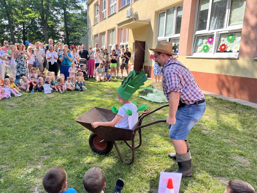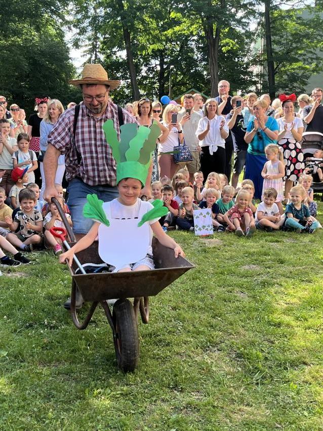 Zasadził dziadek rzepkę w ogrodzie - tymi słowami rodzice rozpoczęli tegoroczny piknik rodzinny w Stokrotce! Mamusie i tatusiowie zamienili się w najprawdziwszych aktorów i przebrani w barwne stroje zaprezentowali utwór Juliana Tuwima. Przedszkolaki były zachwycone, co wyraziły gromkimi brawami! Następnie przyszedł czas na wzruszające piosenki, które dzieci zaśpiewały dla Kochany Rodziców. Po występach mali i duzi mogli skorzystać z licznych atrakcji pikniku takich jak: dmuchańce, pokaz chemiczny, lamy, zabawy z Myszkami Minnie, wesoła gimnastyka z Panią Basią, loteria fantowa, straż pożarna. Nie zabrakło też smakołyków: ciast, ciasteczek, frytek, waty cukrowej i aromatycznej kawy. To było wspaniałe popołudnie pełne dobrej zabawy!