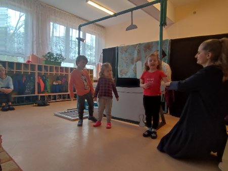 Koniczynki przeżyły niesamowitą przygodę uczestnicząc w interaktywnym przedstawieniu zatytułowanym: ?Wędrówki kropelki wody?. Przebrani za kropelki staliśmy się lekcy i  mogliśmy wykonywać różnorodne ewolucje w powietrzu. Nie tylko musieliśmy przejść całą sieć rurociągów, ale też był czas na oczyszczenie się z  zanieczyszczeń. Aktorzy prowadzili nas i całą wyprawę w iście bajkowym stylu. Dzięki temu spotkaniu dowiedzieliśmy się jak długą drogę musi odbyć woda zanim trafi do naszych kranów i przekonaliśmy się też, o jej konieczności bycia do życia.